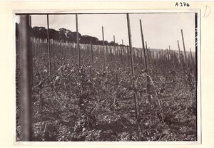 Zu sehen ist ein Foto der Spitze einer Weinrebe, welche Frostschäden aufweist. Das Foto endstsnd im Mai 1934 in der Nähe von Wiltingen (Saar). Das Foto wurde auf ein Stück Pappe geklebt. Auf der Rückseite dieser Pappe befinden sich nähere Angaben zu der Aufnahme. Das Foto stammt aus der ehemaligen Landes-Lehr- und Versuchsanstalt (LLVA) in Bernkastel Kues.