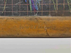 Die Schiefertafel besteht aus einer Schieferplatte, die von einem Holzrahmen eingefasst ist. In die Schiefertafel ist auf der einen Seite ein kariertes Muster und auf der anderen Seite Linien eingeritzt, so dass auf der einen Seite die Matheaufgaben und auf der anderen Seite die übrigen Aufgaben in der Schule bearbeitet werden konnten. Bei den Linien handelt es sich jedoch nicht um einfache Linien, sondern um die Art von Linierung, wie man sie heute auf Kieserblöcken findet, die in der ersten und zweiten Klasse verwendet werden. Durch die Tafel zieht sich beidseitig ein Riss und es ist auch etwas Schiefer auf beiden Seiten der Tafel weggebrochen. Des Weiteren ist die Tafel mit Kreide bunt angemalt. In den Holzrahmen ist ein kleines Loch gebohrt, damit dort ein Läppchen befestigt werden kann. Des Weiteren ist der Rahmen zusammengesteckt und geleimt und es sind Holzdübel zur Verstärkung an den Ecken genutzt worden. Des Weiteren besitzt er verschiedene Prägungen. Auf der Seite mit den Linien ist in den Rahmen das Alphabet in Schreibschrift, einmal in Großbuchstaben und einmal in Kleinbuchstaben eingeprägt. Die Seite mit dem karierten Muster besitzt am oberen Rand die Prägung des Herstellers: "Samos Schreibhilfe" und am unteren Rand ist auf Französisch eingeprägt "Importé d´Allemagne" (Nach Deutschland eingeführt).
