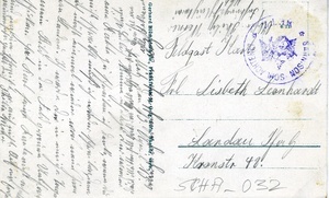 Die Vorderseite der Postkarte zeigt einen kolorierten Druck der "Ludwigstaden" (Quai Saint-Louis, heute Quai Paul Vautrin) in Metz mit Blick auf die Kathedrale Saint-Etienne. Die Uferstraße am mittleren Kanal der durch die Stadt fließenden Mosel erfuhr im Laufe der Geschichte mehrere Umbenennungen. Im 16. Jh. noch als "Quai Sainte Marie" benannt, erhielt die Straße im 18. Jh. den Namen "Quai Saint-Louis". Im Gefolge der Französischen Revolution wurden viele Straßen- und Ortsnamen in Frankreich entchristianisiert. Der Quai Saint-Louis wurde zum "Quai Jean-Jacques Rousseau". In deutscher Zeit (Metz war seit 1871 Verwaltungssitz der Region Lothringen im neu geschaffenen Reichsland Elsaß-Lothringen) wurden viele Straßennamen eingedeutscht. Spätestens im August 1914, mit Ausbruch des Ersten Weltkrieges, fielen sämtliche französische Straßennamen in Metz einer Germanisierungskampagne zum Opfer, wovon die "Ludwigsstaden" zeugen. Heute sind sie nach dem französischen Politiker Paul Vautrin (1876-1938) benannt. Auf der Rückseite befindet sich eine handschriftlich verfasste Nachricht in Sütterlin vom 13.4.1915 von Philip Werner an Fräulein Lisbeth Leonhardt in Landau (Pfalz). [Johanna Kätzel] Im Historischen Museum der Pfalz war vom 29.4.2014 bis 24.9.2017 die Ausstellung "1914 - 1918. Die Pfalz im Ersten Weltkrieg" zu sehen. Auf einen öffentlichen Aufruf hin meldeten sich zahlreiche Privatpersonen, ihre Objekte wurden in dieser Sammlung erfasst und z. T. auch in der Ausstellung gezeigt. Die Objekte befinden sich im Eigentum der Privatpersonen und sind nicht Teil der Sammlungen des Historischen Museums der Pfalz.