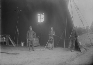 Die Kriegskünstlerkarte zeigt auf der Vorderseite einen Druck nach einem Gemälde des Künstlers Max Rabe. Dargestellt ist die Szene "Nach der Erstürmung eines französischen Dorfes". Vor einer beschädigten Scheune liegen tote französische Soldaten. Drei deutsche Soldaten nehmen drei französische Soldaten gefangen. Im Historischen Museum der Pfalz war vom 29.4.2014 bis 24.9.2017 die Ausstellung "1914 - 1918. Die Pfalz im Ersten Weltkrieg" zu sehen. Auf einen öffentlichen Aufruf hin meldeten sich zahlreiche Privatpersonen, ihre Objekte wurden in dieser Sammlung erfasst und z. T. auch in der Ausstellung gezeigt. Die Objekte befinden sich im Eigentum der Privatpersonen und sind nicht Teil der Sammlungen des Historischen Museums der Pfalz.