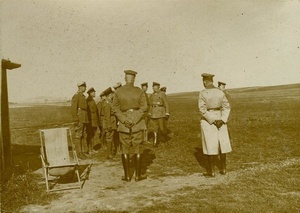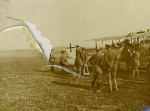 Die Vorderseite der Postkarte zeigt den Druck eines Gemäldes von Hofmaler Art. Fischer mit dem Titel "Besuch im Lazarett". Dargestellt ist Kaiserin Auguste Viktoria beim Besuch in einem Lazarett während sie einem verwundeten Soldaten einen Blumenstrauß überreicht. Am unteren Bildrand sind die Worte "Des Volkes Dank ist euch gewiss" abgedruckt. Im Historischen Museum der Pfalz war vom 29.4.2014 bis 24.9.2017 die Ausstellung "1914 - 1918. Die Pfalz im Ersten Weltkrieg" zu sehen. Auf einen öffentlichen Aufruf hin meldeten sich zahlreiche Privatpersonen, ihre Objekte wurden in dieser Sammlung erfasst und z. T. auch in der Ausstellung gezeigt. Die Objekte befinden sich im Eigentum der Privatpersonen und sind nicht Teil der Sammlungen des Historischen Museums der Pfalz.