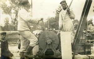 Die Vorderseite der Postkarte zeigt den Druck von einer Aufnahme eines deutschen Soldaten auf einer Brücke über die Chiers in der französischen Gemeinde Longuyon, heute im Département Meurthe-et-Moselle in der Region Lothringen gelegen. Der Ort wurde im Ersten Weltkrieg weitestgehend zerstört. Auf der Rückseite befindet sich die handschriftlich verfasste Nachricht von Musketier Walter Doetz an Fräulein Lisbeth Leonhardt in Landau (Pfalz) vom 25.11.1916. Der Poststempel ist vom 26.11.1916. Die Karte erschien im Verlag für allgemeines Wissen, Berlin W 9. Im Historischen Museum der Pfalz war vom 29.4.2014 bis 24.9.2017 die Ausstellung "1914 - 1918. Die Pfalz im Ersten Weltkrieg" zu sehen. Auf einen öffentlichen Aufruf hin meldeten sich zahlreiche Privatpersonen, ihre Objekte wurden in dieser Sammlung erfasst und z. T. auch in der Ausstellung gezeigt. Die Objekte befinden sich im Eigentum der Privatpersonen und sind nicht Teil der Sammlungen des Historischen Museums der Pfalz.