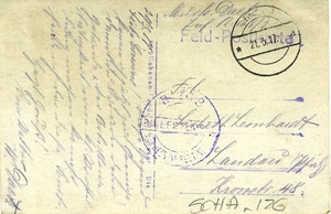 Die Vorderseite der der Feldpostkarte zeigt eine bis zum Horizont reichende Kraterlandschaft mit toten Baumstümpfen. Dabei handelt es sich um eine durch massives, dauerhaftes Artilleriefeuer verwüstete Landschaft. Auf der Rückseite befindet sich eine handschriftlich verfasste Nachricht von Musketier Walter Doetz, 5. Großherzoglich Hessisches Infanterie-Regiment 168, an Fräulein Lisbeth Leonhardt in Landau (Pfalz) vom 20.3.1917. Der Feldpoststempel ist vom 21.3.1917. Im Historischen Museum der Pfalz war vom 29.4.2014 bis 24.9.2017 die Ausstellung "1914 - 1918. Die Pfalz im Ersten Weltkrieg" zu sehen. Auf einen öffentlichen Aufruf hin meldeten sich zahlreiche Privatpersonen, ihre Objekte wurden in dieser Sammlung erfasst und z. T. auch in der Ausstellung gezeigt. Die Objekte befinden sich im Eigentum der Privatpersonen und sind nicht Teil der Sammlungen des Historischen Museums der Pfalz.