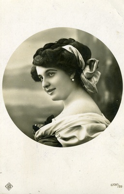 Die Vorderseite der Feldpostkarte zeigt den Druck einer Portraitaufnahme von einer jungen Dame mit Band im Haar. Auf der Rückseite befindet sich eine handschriftlich verfasste Nachricht von Musketier Walter Doetz, 25. Res. Divison Inf. Rgt. 168/2. Kompanie, an Fräulein Lisbeth Leonhardt in Landau (Pfalz) vom 8.10.1915. Der Feldpoststempel ist ebenfalls vom 8.10.1915. Im Historischen Museum der Pfalz war vom 29.4.2014 bis 24.9.2017 die Ausstellung "1914 - 1918. Die Pfalz im Ersten Weltkrieg" zu sehen. Auf einen öffentlichen Aufruf hin meldeten sich zahlreiche Privatpersonen, ihre Objekte wurden in dieser Sammlung erfasst und z. T. auch in der Ausstellung gezeigt. Die Objekte befinden sich im Eigentum der Privatpersonen und sind nicht Teil der Sammlungen des Historischen Museums der Pfalz.