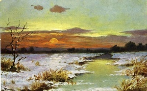 Feldpostkarte "Winterlandschaft bei Sonnenuntergang"