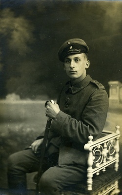 Portrait der Familie Thiel mit den Söhnen Hans (oben links) und Rudolf in Uniform. Zwischen den beiden Soldaten befindet sich ein junges Mädchen, bei dem es sich um die Schwester der beiden handeln könnte. Handschriftliche Notiz auf der Rückseite: "Hans ab (19)14 und Rudolf ab (19)17 Soldat" Im Historischen Museum der Pfalz war vom 29.4.2014 bis 24.9.2017 die Ausstellung "1914 - 1918. Die Pfalz im Ersten Weltkrieg" zu sehen. Auf einen öffentlichen Aufruf hin meldeten sich zahlreiche Privatpersonen, ihre Objekte wurden in dieser Sammlung erfasst und z. T. auch in der Ausstellung gezeigt. Die Objekte befinden sich im Eigentum der Privatpersonen und sind nicht Teil der Sammlungen des Historischen Museums der Pfalz.