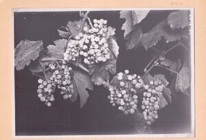 Zu sehen ist Mehltau (Oidium) auf Rieslingtrauben. Der Mehltauerreger war ursprünglich in Nordamerika beheimatet. Auf den dortigen Wildreben verursacht er wenig Schäden. Seit 1845 tritt er in Europa an Kulturreben auf, wo er große wirtschaftliche Schäden insbesondere durch die Beeinträchtigung der Qualität der erzeugten Weine verursacht. Das Foto stammt aus der ehemaligen Landes-Lehr- und Versuchsanstalt (LLVA) in Bernkastel Kues.