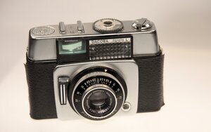 Die Sucherkamera ist eine Dacora Dignette L, die von 1963 bis 1967 in Reutlingen produziert wurde. Sie verfügt über einen eingebauten Belichtungsmesser und für die Belichtung stehen Zeiten von B bis 1/125s zur Verfügung. Das Objektiv ist ein Isco Color Isconar Kreuznach f 2,8 45mm und als Film wird ein 135er Kleinbildfilm verwendet. Das Negativformat beträgt 24 x 36mm. Über dem Filmtransporthebel befindet sich ein Merkrad für den eingelegten Film.