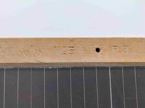 Die Schiefertafel besteht aus einer Schieferplatte, die von einem Holzrahmen eingefasst ist. In die Schiefertafel sind auf der einen Seite einfache Linien eingeritzt und die andere Seite besitzt keine Linierung, so dass auf der einen Seite die Schreibaufgaben und auf der anderen Seite die übrigen Aufgaben in der Schule bearbeitet werden konnten. Durch die Schieferplatte zieht sich auf Vorder- und Rückseite der Tafel ein waagerechter Riss. Dieser fällt jedoch nur auf der Seite ohne Linierung auf, da er auf der Seite mit der Linierung genau auf einer Linie ist. Auf der Seite ohne Linierung sind noch blaue Kreidespuren am Rahmen auszumachen. Der Holzrahmen ist gesteckt und geleimt und in ihn ist ein kleines Loch gebohrt, damit dort ein Läppchen befestigt werden konnte. Auf der Seite mit den Linien ist um das Löchlein die Prägung des Herstellers vorhanden, einmal das Logo desselben, eine Krone, und dann die allgemeinen Angaben zur Tafel N°5 und R3.