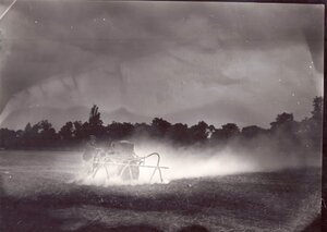 Zu sehen ist eine Maschine namens "Autofix" beim Stäuben. Es handelt sich hier um ein fahrbares Gerät, mit dem zum Beispiel Dünger oder Kalk auf die Äcker ausgebracht werden können. Das Foto stammt aus der ehemaligen Landes-Lehr- und Versuchsanstalt (LLVA) in Bernkastel Kues.