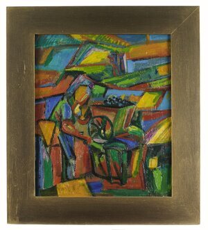 In der Südpfalz bei Landau bewirtschaftet ein Landwirt sein Feld mit Pferd und Heuwender. Vor der Kulisse des Haardtgebirges wendet der Bauer in der sommerlichen Nachmittagssonne zusammen mit seinem großen braunen Kaltblut das Heu. Bäume und Sträucher, geleiten den Blick der Betrachter in die räumliche Tiefe der Darstellung. Der Eindruck wird effektvoll durch Licht- und Luftperspektive verstärkt. Von der hellen grauen Silhouette der Hügel geht die lichte Farbigkeit in den gelblichgrauen Sommerhimmel über. Der malerische Eindruck wird durch einen impressiven Pinselduktus im Kontrast zu fein gesetzten Lasuren unterstützt. Unten rechts bezeichnet: "A. Kessler". Nach einer Lehre als Dekorationsmaler in Landau besuchte Adolf Kessler 1907 bis 1910 die Kunstgewerbeschule und danach (1910 bis 1914) die Akademie der Bildenden Künste bei Angelo Jank, beides in München. Er wurde ebenfalls durch Max Slevogt gefördert. 1915 bis 1918 nahm Adolf Kessler am Ersten Weltkrieg teil. 1920 bis 1921 schloss er seine Studien an der Akademie der bildenden Künste in München ab. 1922 war er Gründungsmitglied der Arbeitsgemeinschaft Pfälzer Kunst. Von 1924 bis 1926 erhielt er Aufträge in der Schweiz und unternahm Studienreisen nach Holland, Frankreich und Italien. Er arbeitet ab Mitte der 20er Jahre vornehmlich an Aufträgen (Fresken etc. 9 in der Pfalz. 1927 heiratet er Madelon Schünemann, die Tochter einer Bremer Kaufmannsfamilie. 1953 war Adolf Kessler Gründungsmitglied der Pfälzer Künstlergenossenschaft.