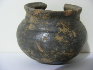 Becher mit Inschrift: TVDAM Ab dem 3. Jahrhundert werden an Mosel und Rhein vielfältig geformte Trinkgefäße hergestellt. In römischer Zeit dehnen sich die Rebflächen in Folge eines gestiegenen Weinkonsums aus. Ausgiebige Tonvorkommen begünstigten bereits in vorrömischer Zeit die Keramikherstellung in der Region. Zur römischen Kaiserzeit werden in den Werkstätten nun Importe aus südlicheren Regionen nachgeahmt. Hierzu zählt auch das weitverbreitete Terra Sigillata. Zu den ältesten und sich auf den Weinbau sich beziehenden Gefäßen zählen „Terra Nigra“-Gefäße. Unter Terra Nigra verstehen Archäologen und Archäologinnen eine geschlämmte, hellgraue bis schwarzgraue Tontöpferware. Auf Grabbeigaben dieser Art aus der Mitte des 1. Jahrhunderts fanden sich die ältesten Traubendarstellungen des Moseltals. Auch Spruchbecher sind ein erfolgreiches Produkt aus Werkstätten im Trierer Raum. Charakteristisch für die Gattung sind Trinksprüche und Verzierungen in Weißmalerei aus Tonschlicker. [Jonas Ehinger]