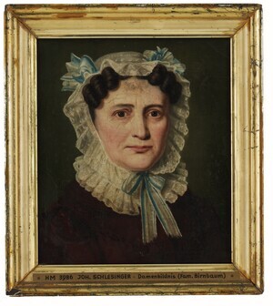 Zugehörig zu HMP_1988_0202. Porträt von Johann Wilhelm Fliesen (1766-1852) in Frack, weißer Weste mit Stehkragen und schwarzer Halsbinde. Fliesen studierte Politische Ökonomie und Jura und wirkte 1793-1797 in Kaiserslautern als Kollektor (Einnehmer) der französischen Regierung. 1814 kamen die französischen Territorien links des Rheins vorläufig unter österreichisch-bayerische Regierung. Der Generalrat (Conseil général) des bisherigen Départements du Mont-Tonnerre wurde zur Kriegsschuldenliquidationskommission umgewandelt, der Vorläufer des späteren Pfälzischen Bezirkstages. Johann Wilhelm Fliesen war Mitglied dieses Gremiums sowie leitender Kirchenrat des reformierten Konsistoriums in Worms. 1816 fiel der südliche Teil der linksrheinischen Gebiete als Rheinkreis (mit Speyer als Kreishauptstadt) an das Königreich Bayern. Ein Generalkonsistorium vereinte die kirchlichen Oberbehörden für die lutherischen und reformierten Gemeinden. Fliesen trat dort als bayerischer Beamter ein und leitete im Auftrag von König Max I. Joseph von Bayern die erfolgreiche Unionssynode im August 1818 in Kaiserslautern, aus der die Protestantische Landeskirche der Pfalz hervorging. Johann Wilhelm Fliesen war bis 1832 Direktor des Speyerer Konsistoriums dieser vereinigten Kirche. Nachdem Fliesen aus Regierungssicht nicht streng genug gegen Geistliche durchgegriffen hatte, die sich beim Hambacher Fest engagiert hatten, versetzte man ihn als Regierungsrat nach Ansbach. Johann Schlesinger war zunächst Schüler seines Bruders Johann Adam. Er arbeitete in der Tradition holländischer Stilleben-Maler des 17. Jh., war aber auch ein gesuchter Porträtist. Er lebte und wirkte hauptsächlich in Mannheim.