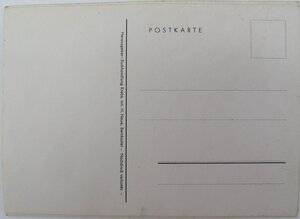 Die 4 hochformatigen gleichen Postkarten zeigen den heiligen Rock während seiner Ausstellung vom 19. Juli bis 20. September 1959 in der Heilig-Rock-Kapelle des Trierer Doms. Er hängt ausgebreitet zwischen zwei Glasscheiben, die ein Metallgestell hält. Hinter ihm ist der Hochaltar, den ein Vorhang des Trierer Künstlers Reinhard Hess (1904-1998), auf dem ein Brustbild von Jesus Christus abgebildet ist, teilweise verdeckt. Auch die Bogenfenster rechts neben dem Altar sind mit Vorhängen versehen, damit das Sonnenlicht nicht dem Gewand schaden kann. Vor dem heiligen Rock ist ein schmaler Altar, der mit einem Tuch, Kerzen und einem Kruzifix geschmückt ist. Ein großer runder Teppich liegt auf dem Fußboden davor. Es findet eine festliche Messe statt, hinter dem heiligen Rock und auf den Treppen zum Hochaltar sowie auf der Balustrade davor stehen zahlreiche Geistliche. Auf der rechten Bildseite sehen wir Männer in schwarzen Anzügen, die mit einem Kreuz bemalten Schilder halten - offensichtlich die Domgarde. Im Vordergrund links ist in Rückensansicht der Bischof von Trier, Matthas Wehr, in Begleitung zweier Geistlicher zu sehen. Zu erkennen ist der Bischof durch seinen Bischofsstab. Die Rückseite der Postkarte hat rechts ein Feld für die Anschrift des Adressaten, links ein Feld für den Text des Absenders sowie das Impressum des Herausgebers: Buchhandlung Krebs, Inhaber H. Neue, Bernkastel, sowie der Hinweis: Nachdruck verboten.