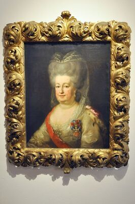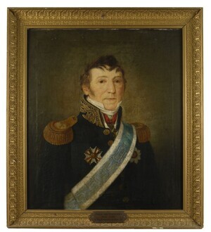 Halbfigurenporträt in sitzender Position. Die Dargestellte sitzt auf einem Lehnstuhl in schwarzem Kleid mit weißer Bluse. Auf Ihrer linken Seite sind insgesamt acht Orden angeheftet. Zum Zeitpunkt der Entstehung des Gemäldes war Walburga Weinspach 65 Jahre alt. Vielleicht ist das Gemälde anlässlich des Übergangs in das Rentenalter entstanden. Die Orden verweisen insbesondere auf die Zeit von Frau Weinspach als Rot-Kreuz-Schwester im Ersten Weltkrieg. Oben rechts der bayerische Luitpold-Orden. Friedrich Ulm war als Zeichenlehrer an der Speyrer Realschule tätig.