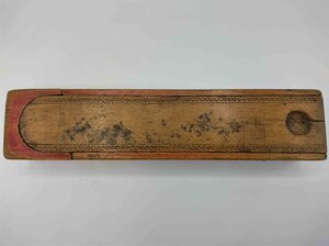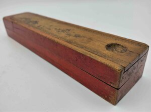 Die Griffeldose, auch als Griffelkasten bekannt, ist aus Holz gefertigt, außen rot lackiert und auf dem Deckel früher vermutlich mit einem Blumenmotiv versehen. Der Deckel der Dose kann zu einer Seite komplett herausgeschoben werden. Die Dose ist in zwei Ebenen aufgeteilt, die durch eine Schraube miteinander verbunden sind. Ist der Deckel gänzlich entfernt, kann die obere Ebene der Dose seitlich weggedreht werden, damit die untere Ebene frei, bzw. erreichbar wird. Die obere Ebene der Dose besitzt Fächer für vier Stifte oder Griffel, es sind hier noch ein gelber Buntstift und ein grüner Bleistift vorhanden. Die untere Ebene ist in drei Fächer aufgeteilt, ein langes Fach, in dem sich noch zwei Federhalter mit Federn befinden, ein mittellanges Fach, in dem noch weitere Schreibfedern vorhanden sind, sowie ein kurzes Fach, in dem Büroklammern aufbewahrt sind. Die Griffeldose besitzt keinerlei Prägung, die einen Hinweis auf den Hersteller gibt. Einer der vorhandenen Schreibfederhalter ist von der Marke A. W. Faber.