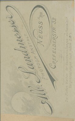 Das Foto zeigt einen jungen Mannes, der ein mitteldunkles Sakko und ein helles Hemd trägt. Um den hohen Stehkragen hat er eine weiße Krawatte gebunden. Er hat keinen Bart, seine mittellangen Haare sind nach hinten gebürstet. Er links am Betrachter vorbei. Unter dem Bild: Alb. Landmesser Neuss Auf der Rückseite: Alb. Landmesser Photogr. Anstalt Neuss Crefelderstr. 32