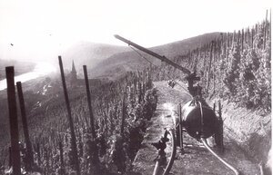 Zu sehen ist ein fahrbares Gerät, auf eine Pumpe montiert ist. Hinter dem Gerät hängen, an einer langen Stange , Schläuche mit Düsen herunter. Die Endstücke sind so geformt, dass von unten gespritzt werden kann. Das Foto stammt aus der ehemaligen Landes-Lehr- und Versuchsanstalt (LLVA) in Bernkastel Kues.