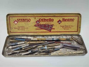 Die Griffel- oder Stiftedose der Marke Stabilo ist aus Metall gefertigt. Ursprünglich war die Dose wohl gänzlich in goldener Farbe gehalten, mit Ausnahme der Roten Farbe, welche das Logo auf dem Deckel der Dose ziert, jedoch ist die Farbe der Dose stark ausgeblichen und an manchen Stellen ist die Farbe nicht mehr erkennbar, weil das Metall der Dose oxidiert ist. In ihrem Inneren ist die Dose nicht untergliedert und in ihr befindet sich ein Sammelsorium aus Bleistiftminen, Schreibfedern und Griffeln. Der aufklappbare Deckel besitzt auf seiner Innenseite die Logos von Stabilo, der "Schwan-Bleistift-Fabrik A.G. Nürnberg", dem englischen Pendant Swano, beschrieben als "Swan Pencil Go. Nurenberg Germany", und das Logo von Othello, welches als mittleres Logo abgebildet ist. Alle drei besitzen als Markenzeichen den Schwan.