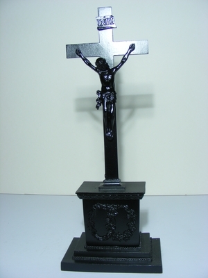 Der sechspassförmige Fuß des Kelchs ist auf der Oberseite mit Pflanzenmotiven verziert. Blaue Steine schmücken den Knauf, die Kelchschale ist mit Kreismotiven verziert, die mit Weintrauben, Weinblättern und Ähren gefüllt sind. Ähren und Trauben stehen hier symbolhaft für Brot und Wein, die in der Messfeier zu Leib und Blut Christi gewandelt werden.
