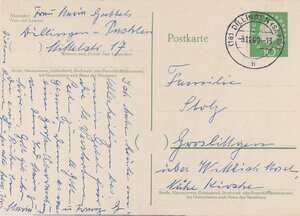 Ein Postkarte an die Familie Stolz aus Großlittgen bei Wittlich in der Eifel. Die Karte wurde am 01. November 1960 versendet. Abgeschickt wurde der Brief von Maria Goebbels aus Dillingen. Auf der Vorderseite befindet sich nicht wie bei Postkarten üblich eine Abbildung. Stadtessen ist dort Platz für mehr Text .