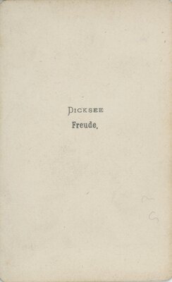 Auf der Karte wird, wieder in ovalen Ausschnitt, das selbe Mädchen wie auf dem vorherigen Bild, mit Kasperpuppe im Arm, gezeigt. Sie trägt dieselbe Kleidung, dunkles Wams über heller Bluse mit Kette, neigt ihren Kopf ein wenig nach links und blickt dieses mal sehr zufrieden nach links unten aus dem Bild. Auf der Rückseite: Picksee (dann fett) Freude