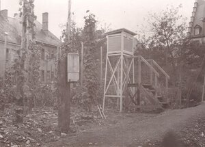 Zu sehen ist eine kleine Wetterhüte in der Messgeräte für Wetterdaten stehen. Über die Treppe sind die Geräte erreichbar und ablesbar. Das Foto stammt aus der ehemaligen Landes-Lehr- und Versuchsanstalt (LLVA) in Bernkastel Kues.