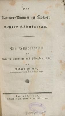 Einseitiges Programm des I. Vereinskonzertes des Liedertafel-Cäcilienvereins Speyer a. Rh. Veranstaltungsort ist der Stadtsaal in Speyer, am Donnerstag den 3. Dezember 1914, abends um 20.00 Uhr.