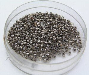 In einer runden durchsichtigen Kunststoffdose (D: 4,7 cm; H: 1,5 cm) befinden sich 5 Gramm Glasperlchen, die mit einem silbrigen Überzug versehen sind, sodass sie aussehen wie Metallperlchen. Sie dienen zur Schmuckherstellung und zur Herstellung von Reliquienbildern oder Reliquienkapseln.