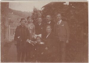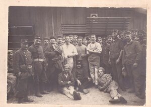 Das Bild zeigt einen großen Weinberg. Auf einer kahlen Fäche teilen sich zwei Schienen einer Lorenbahn. Rechts daneben verläuft eine etwa mannshohe Mauer, von der aus die Loren befüllt wurden. Auf diesem Platz haben sich 43 Personen zum Gruppenbild versammelt, 29 Frauen und 14 Männer. Alle tragen Kopfbedeckungen, die Frauen Kopftücher, die Männer Hüte. Die Frauen tragen Kittel, Hosen und feste Schuhe, oder Stiefel. Die Männer feste Jacken, Hosen und Stiefel. Auf der Mauer stehen 14 Helfer, alle anderen auf dem Platz. An dessn Ende stehen auf einem großen Gefäß 3 Männer, die eine Frau in der Mitte einrahmen. Der Mann hinter der Frau hat ein langes Paddel, oder einen Stampfer über seine Schulter gelegt. Diese Gruppe verdeckt beinah einen runden Turm am Horizont. Alle schauen in die Kamera. Das Foto stammt aus der ehemaligen Landes-Lehr- und Versuchsanstalt (LLVA) in Bernkastel-Kues.