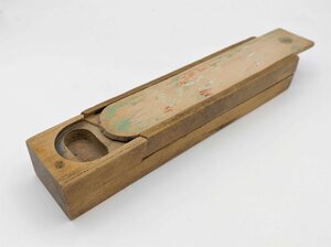 Die Griffeldose, auch als Griffelkasten bekannt, ist aus Holz gefertigt und der Deckel der Dose kann zu einer Seite komplett herausgeschoben werden. Die Dose ist in zwei Ebenen aufgeteilt, die durch eine Schraube miteinander verbunden sind. Erst wenn der Deckel entfernt ist, kann die obere Ebene seitlich weggedreht werden, damit die untere Ebene frei, bzw. erreichbar wird. Die obere Ebene der Dose ist in zwei gleich große Fächer aufgeteilt und in ihnen befinden sich noch vier Stahlfedern sowie ein kleiner Pinsel. Die untere Ebene ist in drei Fächer aufgeteilt, ein langes Fach, ein mittellanges und ein kurzes Fach. Die Griffeldose besitzt keinerlei Prägung, die einen Hinweis auf den Hersteller gibt. Auf dem Deckel sind noch die Reste eines Motives vorhanden, das vor allem in den Farben grün, weiß und rot gehalten war.
