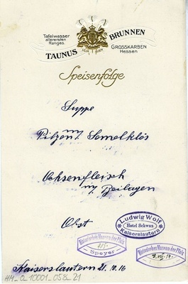 Einseitig bedrucktes Flugblatt der "Bayerischen Lebensmittelstelle, Verwaltungsabteilung ", mit dem Titel "Merkblatt über Pilze", "Unter Mitwirkung des Vereins für Naturkunde in München, der Münchener Hausfrauenvereinigung und der Hauswirtschaftlichen Zentrale für Bayern (,) herausgegeben und bearbeitet von Professor Dr. Hans Schnegg". Anhand von vier Oberthemen (I. Erkennung der Pilze, II. Sammeln der Pilze, III. Behandlung der Pilze zu Hause, IV. Verwertung der Pilze) und jeweiligen merksatzähnlich formulierten Unterpunkten, werden hier praktische Hinweise zur Lebensmittelversorgung in der Kriegszeit erteilt.