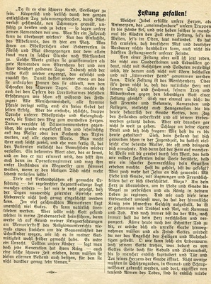 Missionsblatt "Erquickungsstation unter dem Kreuz von Golgatha in Kriegsnöten. Zugleich ein Gruß aus der Heimat an unsere kämpfenden und verwundeten Soldaten". 4-blättriges Missionsblatt der Evangelischen Vereinsbuchhandlung Kaiserslautern (21. Dezember 1915). Schriftleitung: Professor Krafft in Kaiserslautern. Druck: Emil Rohr Buchdruckerei und Verlagsgesellschaft m.b.H., Kaiserslautern.