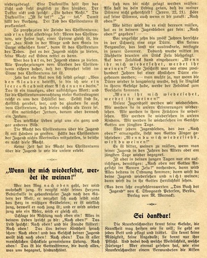 Missionsblatt "Erquickungsstation unter dem Kreuz von Golgatha in Kriegsnöten. Zugleich ein Gruß aus der Heimat an unsere kämpfenden und verwundeten Soldaten". 4-blättriges Missionsblatt der Evangelischen Vereinsbuchhandlung Kaiserslautern (02. April 1916). Schriftleitung: Professor Krafft in Kaiserslautern. Druck: Emil Rohr Buchdruckerei und Verlagsgesellschaft m.b.H., Kaiserslautern.