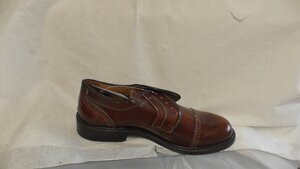 Ein Einzelner Herren-Schnürschuh aus Lackleder und in braun-schimmer. Eckige Form, Schuhgröße 7,5. Der Schuh hat einen metallgenagelten Blockabsatz (3 cm). Der Schuh verfügt über eine Schnürung ohne Ösen und ohne Schnürsenkel. Zudem noch über Ziernähte. Hergestellt in Deutschland für die Marke "Westland".