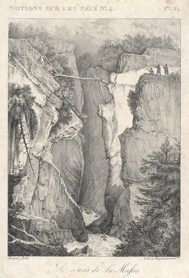 Die kolorierte Aquatinta-Radierung zeigt die Kapelle des Einsiedlers Niklaus von Flüe (1417-1487) in der Ranftschlucht im heutigen Kanton Obwalden (früher Kanton Unterwalden) in der Schweiz. Der wohlhabende Bauer und Ratsherr Niklaus von Flüe verließ mit 50 Jahren seine Familie, um Einsiedler zu werden. Nach einer Vision während seiner Pilgerreise ließ er sich unweit seines Hauses im Ranft als Einsiedler Bruder Klaus nieder. Die an seine Klause angebaute Kapelle wurde rasch zu einem Wallfahrtsort. 1947 wurde Nikolaus von Flüe heiliggesprochen. Die Grafik wurde von Johann Hürlimann nach einer Vorlage von Gabriel Lory dem Jüngeren angefertigt. Sie ist Teil einer Serie von 37 Tafeln, die 1829 in einem Reiseführer zur Schweiz erschienen: "Souvenirs de la Suisse, ou, Recueil de vues remarquables pour faire suite au Voyage pittoresque dans l'Oberland bernois". Gabriel Lory der Jüngere zählt wie sein Vater Gabriel Lory der Ältere zu den so genannten Schweizer Kleinmeistern. Diese waren vor allem für romantisierende, pittoreske Landschaftsschilderungen bekannt, die meistens als Druckgrafiken in handlichen Formaten vertrieben wurden, um den im Zuge des aufkommenden Alpentourismus steigenden Bedarf an bildlichen Reiseandenken zu decken. [Johanna Kätzel]