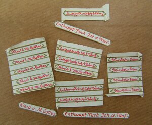 Seidenstückchen und Inschriften (Cedulae) zu den Aachener Heiligtümern