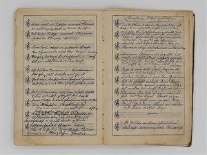Das Liederbuch "Der Zupfgeigenhansl" wurde von Hans Breuer unter Mitwirkung vieler "Wandervögel" herausgegeben. Das Buch ist beim Verlag Friedrich Hofmeister 1916 in der 35. Auflage erschienen. Auf die erste Seite dieses Liederbüchleins ist eine Widmung geschrieben "Zum steten Andenken an Deinen Freund Wilhelm Hochstein", datiert auf den ersten August im Kriegsjahr 1916. Besonders an diesem Buch ist, dass hinten im Buch freie Seiten sind, auf denen Selbstgehörtes aufgeschrieben werden konnte. Diese Seiten wurden vom ehemaligen Besitzer alle genutzt, die Zettel sind alle eng mit Liedtexten beschrieben. Insgesamt zeigt das Buch Spuren von starkem Gebrauch.