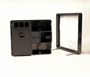 Unser Objekt ist ein kleiner Tischprojektor mit Namen Fafix, der Firma Zillmer Apparatebau . Objektiv: Fafix - Anastigmat 3,5/80, Fafix-Projektor. Ein sehr kompaktes Gerät -- Rahmengröße - Dia 24 x 36 - Maneller Bildwechsel Dia voben nach unten fallend? Der Gehäusedeckel hat inliegend eine 14 x 17 cm große Projektionsleinwand, so ohne weiteren Aufwand Bilder betrachtet werden können. Wir sind ziemlich sicher, dass unser Projektor für den Amerikanischen Markt produziert wurde. Die Stromversorgung von 110 Volt und die Projektorlampe von 110V/50 Watt aus amerikanischer Produktion sprechen dafür. Stomanschluss seitlich