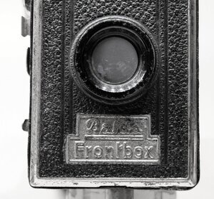 Unser Objekt ist eine Kamera „Balda Frontbox“ aus Stahlblech, bezogen mit schwarzem Leder (Imitat?). Seitlich ist beiderseits der Name „ Balda“ in das Leder eingeprägt. Die Kamera hat 2 geschliffene Sucher für Aufnahmen im Hoch- bzw. Querformat. Zum Einsatz kommt ein Rollfilm, mit dem 8 Aufnahmen im Format 6 x 9 cm gemacht werden können. An der Frontseite ist, unterhalb der Linse, ein Metallschild mit der Aufschrift „Balda Frontbox. Der Zustand ist von starken Gebrauchsspuren gekennzeichnet. Im Innern befindet sich noch ein unbelichteter Film. Hergestellt wurde die Kamera Mitte der 1930er Jahre, von den Balda Werken in Dresden. Angesiedelt war die Kamera im mittleren Preissegment und kostete ca. 6-7 RM.