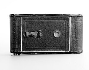 Unsere Krauss Rolette ist eine Balgkamera der Kamerafabrik Krauss aus Stuttgart. Der Fotoapparat ist aus Metall gefertigt und mit schwarzem Leder bezogen. Hergestellt wurde sie 1928 in einer sehr kompakten Bauweise, wozu auch das kleinere Bildformat 5 x 8 cm beitrug. Als "Westentaschenkamera" beworben, soll sie -lt. Hersteller- die ersta Kamera, mit diesem Format, in Deutschland gewesen sein. Das Objektiv ist ein Rollar Anastikmat 6,8 – 90mm Brennweite (KB-Äquivalent: 41,47). An Filmmaterial wurde ein Rollfilm benötigt, etwa der Agfa N6 oder der Kodak 129. Durch einfachen Druck auf den Knopf an der Oberseite, springt die Kamera auf, so dass das Objektiv mit dem Balg herausgezogen werden kann. Ausgrüstet ist der Apparat mit einem drehbaren Brilliantsucher für Hoch- bzw Queraufnahmen.