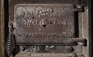 Ein 100l fassender von unten beheizbarer Kessel der Marke Ewald Lang. Ein Waschkessel ist ein beheizbarer Behälter, der zum Erhitzen von Wasser bzw. Waschlauge dient und in dem Wäsche gewaschen wird. Die Beheizung erfolgt meist durch ein Holz- oder Kohlenfeuer. Bis zur allgemeinen Verbreitung der Waschmaschine ab den 1960er Jahren gehörten Waschkessel zur Ausstattung der meisten Haushalte, heute werden sie nur noch selten verwendet. Der Kessel konnte für verschiedenste andere Zwecke verwendet werden: Als Waschkessel zum Wäsche waschen, als Wurst- oder Schlachtkessel oder auch in Gerbereien. In der Landwirtschaft wurde er auch zur Zubereitung von Viehfutter, zum Erhitzen von Gläsern beim Einwecken und Eindosen verwendet. Der abgebildete Kessel ist aussen aus Beton gefertigt und besteht aus zwei Teilen: der obere Teil verbirgt in einer Betonschale einen Kessel, der mit einem eisernen Deckel abdeckt ist. Auf dem Beton befindet sich eine ncht mehr lesbare Inschrift, wahrscheinlich mit dem Firmen- oder Midellnamen. Eine Etage tiefer befindet sich der Ofen mit zwei Türen - oben zum Befüllen und als Zugang zur Brennkammer. Direkt über der Tür zur Brennkammen steht "FEUERFESTER-BETONOFEN" An der Tür zur Brennkammer befindet sich die Modellbezeichung "Langs's BRILLANT - EWALD LANG, WUPPERTAL-VOHWINK.". Darunter befindet sich eine Tür als Zugang zur Aschekammer mit einem Schieber zur Regulierung der Luftzufuhr. Da die Stadt Wuppertal erst seit 1930 unter diesem Namen existiert, kann der Kessel nicht früher gefertigt worden sein.