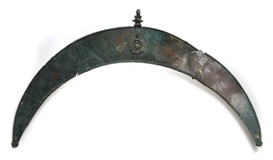 Das sichelförmige Bronzeblech diente als Brustgehänge eines Pferdegeschirrs. Es ist mit einem durchbrochen verzierten Medaillon besetzt. An verschiedenen Stellen sind weißliche Einlagen erkennbar, Reste einer roten Koralle. Über dem Medaillon vermittelt eine Lasche zu einer Aufhängevorrichtung mit Öse. Das Bronzeblech war ansonsten unverziert, wirkte aber durch die ursprünglich goldglänzende Metalloberfläche. Das ganze Können keltischer Handwerker wurde bei dieser Pferdeausstattung eingesetzt. Das mit dem Sichelanhänger geschmückte Pferd konnte nur noch im Paradeschritt bewegt werden und genau das, Repräsentation, war aber auch die Absicht. Die ungewöhnliche Garnitur für ein Reitpferd war im Grab eines Kriegers niedergelegt, der zur regionalen Führungsschicht gehörte. Zur standesgemäßen Repräsentation gehörte hier gewöhnlich noch ein zweispänniger Wagen. Das Grab wurde in Wintrich entdeckt und datiert in die Zeit um 350 v. Chr.