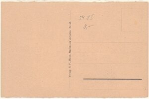 Karte im Querformat und im SW-Druck. Die Karte zeigt einen Blick auf den Ort mit Fachwerkhäusern vom Reisberg aus. Rechts im Bild die Kirchen. links neben Kirchturmspitze die Erhebung ist die Landskron bei Bad Neuenahr. Vorderseite: Unten links "Souvenier Bodendorfer a. d. Ahr" Rückseite: Mittig senkrecht "Verlag S. F., Bonn, Nachdruck verboten Nr. 68"