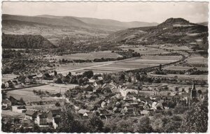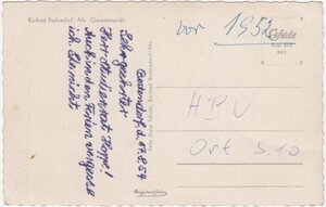 Karte im Querformat, mit gewelltem Rand und im SW-Druck. Das Titelbild zeigt einen Blick vom Reisberg auf den Ort. Im Hintergrund rechts die Landskron bei Bad Neuenahr. Rückseite: Mittig senkrecht "Foto Jupp Schuld, Kurbad Bodendorf/Ahr". Im Briefmarkenfeld steht "Cerkade / Bon 010 / 54/1". Offenbar ein Schüler hat Grüße an seinen Lehrer am 17.5.1954 geschrieben und ihm mitgeteilt, dass er ihn auch in den Ferien nicht vergessen werde. Des weiteren steht mit Tintenstift "vor 1952" geschrieben. Dies kann nur bedeuten, dass so der Ort vor 1952 ausgesehen haben muss.