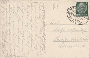 Karte im Querformat und im SW-Druck mit weißem Rahmen um das Bild. Das Bild zeigt im Vordergrund eine kleine Parkanlage zwischen Kurmittelhaus und Kurhaus. Links im Bild, und Kurhaus/Kurhotel und rechts im Bild das Kurmittelhaus mit der alten Trinkhalle und dem Kohlensäure-Werk hinter dem offenen Gebäudeteil. Links hinter dem Kurmittelhaus ragt Haus Elisabeth heraus. Im Hintergrund der hohe Berg ist die Landskrone bei Bad Neuenahr. Beschriftet ist die Vorderseite unten links "Bad Bodendorf, Kurhäuser und Badehaus". Rückseite: Senkrecht: "Dornbach & Elfgang, Photohandlung, Bad Neuenahr, Kurkolonnade 5" Die Karte wurde von einem Kurgast beschriftet und nach Duisburg-Meiderich verschickt. Frankiert ist die Karte mit einer 6 Pfg-Briefmarke Motiv Reichspräsident Hindenburg.