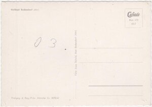Karte im Querformat mit gewelltem Rand und schwarz-weiß-Druck. Im Vordergrund rechts das Sanatorium Spitznagel und links die Sanatorium Sonnenberg (Ahrtal-Klinik). Dahinter sind die Rest-Weinberge am Sonnenberghang zu erkennen. Rückseite: links oben "Heilbad Bodendorf (Ahr), unten "Freigeg. d. Reg.-Präs. Münster Cr. 3078/62" und senkrecht "Foto Jupp Schuld, Bad Bodendorf (Ahr)". Im Briefmarkenfeld "Cerkade / Bon 072 / 65/2"