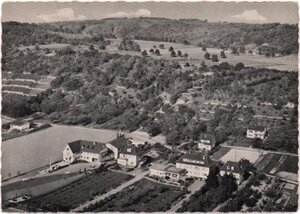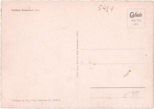 Karte im Querformat, Rand gezackt im SW-Druck. Im Vordergrund von links nach rechts einzelstehendes Wohnhaus vor den Weinbergen. rechts daneben das Sanatorium Sonnenberg und daneben rechts Sanatorium Spitznagen und anschließend Wohnhäuser. Im mittleren Bildteil von links nach rechts noch aktive Weinbergs und danach stillgelegte Weinberge. Dahinter Ebene mit landwirtschaftlichen Flächen. Rückseite: Oben links "Heilbad Bodendorf/Ahr"; unten links "Freig. d. Reg.-Prä. Münster Cr. 3078/62"; oben rechts "Cekade Bon 072065/2". Senkrecht mittig "Jupp Schuld, Bad Bodendorf (Ahr)