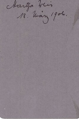 Zu sehen ist das Baby Martha Weis im Kinderwagen Sie trägt ein spitzenbesetztes Lätzchen uber einer Babyjacke. Auf dem Kopf träge sie eine, mit Schleifen besetzte Mütze, die ihr Gesicht noch kleiner erscheinen lassen. Sie hält sich mit der linken Hand an der Seite des Kinderwagens fest. Mit der Rechten stützt sie sich im Polster ab.