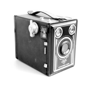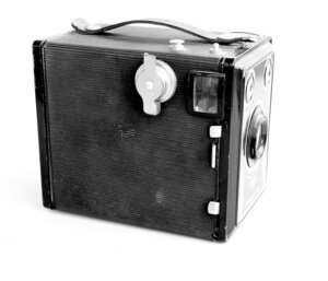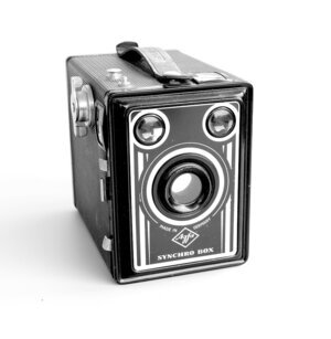 Die Agfa Box 600 „Synchron-Box“ wurde zwischen 1951 und 1957 hergestellt. Der Zusatz „Synchron“ stand für den neuen Blitzgeräteanschluss, der ab 1951/52 eingebaut wurde. Unsere Kamera ist noch mit einem Original Rollfilm bestückt, von dem bisher 5 Aufnahmen, im Format 6 x 9 cm, verknipst wurden. Das Gehäuse besteht aus Stahlblech, mit schwarzem Kunststoff überzogen. Der Verkaufspreis lag 1951 bei 14 DM